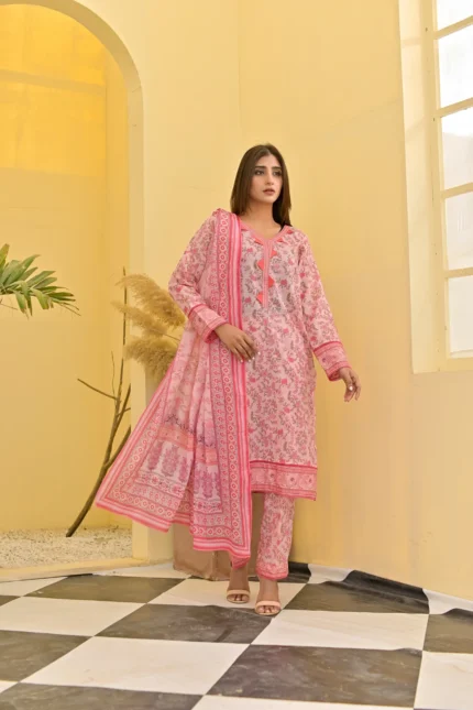 Beautifully printed with vibrant colors, this suit blends comfort with elegance—perfect for any occasion. Embrace Pakistani tradition with a modern touch!