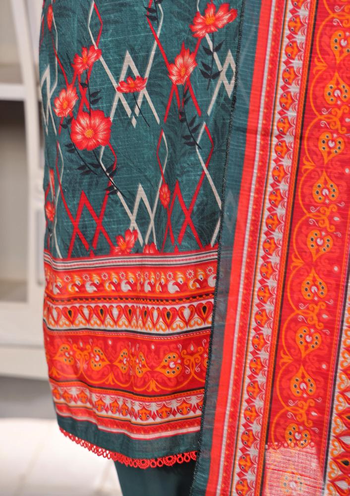 Beautifully printed with vibrant colors, this suit blends comfort with elegance—perfect for any occasion. Embrace Pakistani tradition with a modern