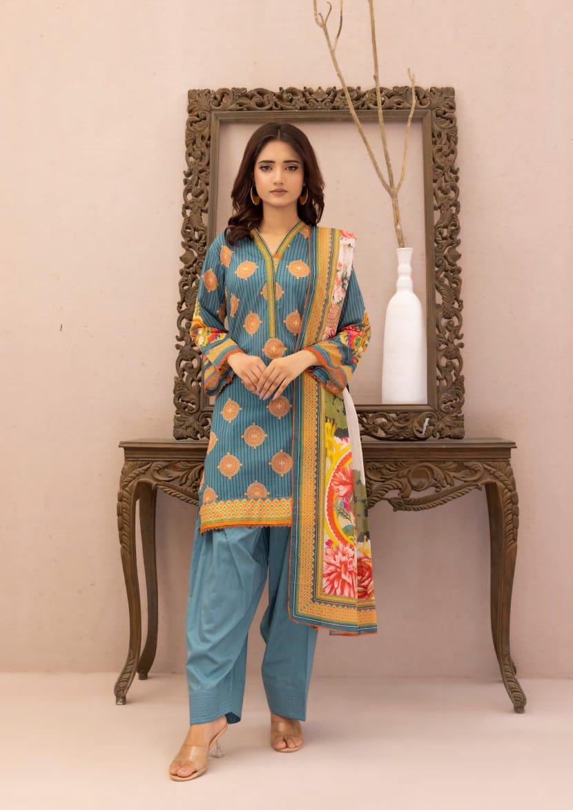 Beautifully printed with vibrant colors, this suit blends comfort with elegance—perfect for any occasion. Embrace Pakistani tradition with a modern touch!