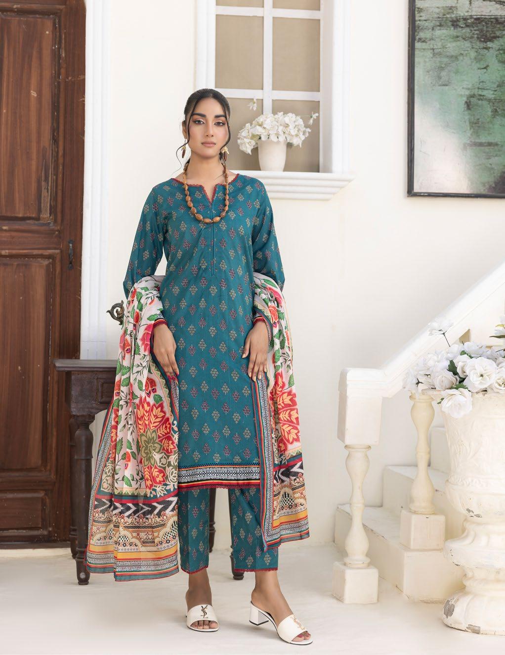 Beautifully printed with vibrant colors, this suit blends comfort with elegance—perfect for any occasion. Embrace Pakistani tradition with a modern touch!